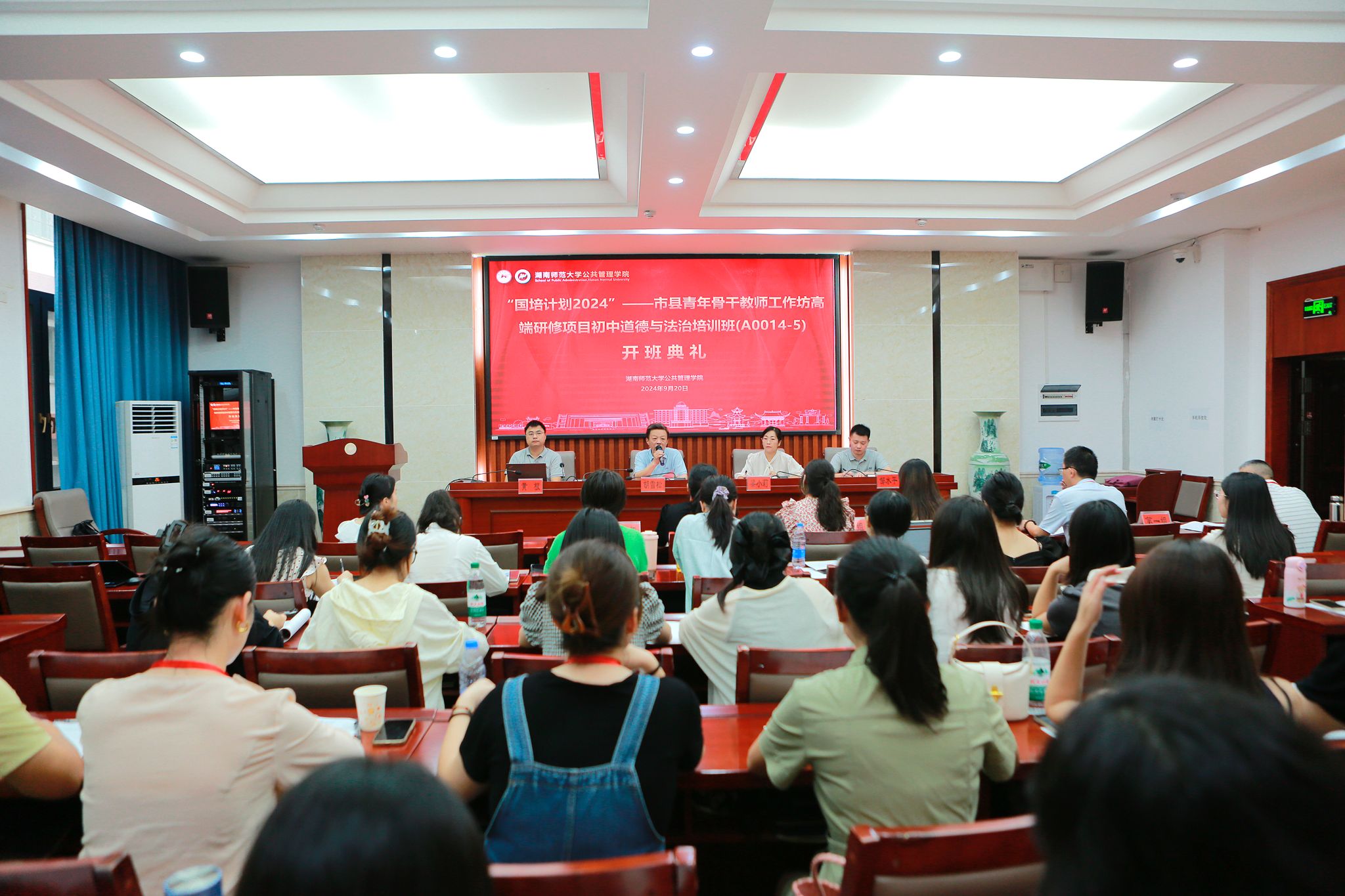 “国培计划2024”—市县青年骨干教师工作坊高端研修·初中道德与法治培训班40名学员参加了开班典礼。