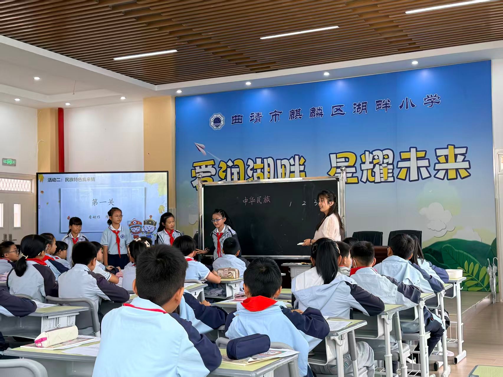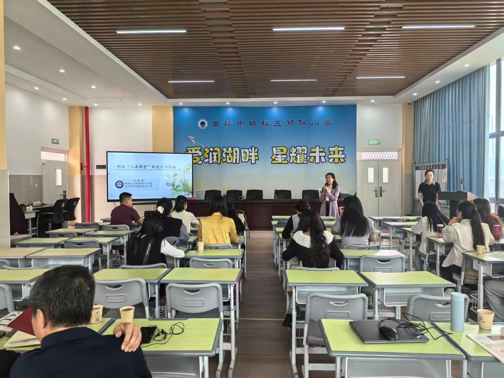 在安宁市连然小学、安宁市太平学校、昆明市经济技术开发区实验小学、曲靖市麒麟区湖畔小学及曲靖市教育体育局等单位,沈妍琼进行了题为《中华民族一家亲》的教学示范课,王新菲、马明和肖华根分别以《例谈“三真课堂”的设计与实施》《新课标·新教学·新评价——道德与法治课程标准解读》《绕不开的成长策源地--课堂》为题在相关学校开展了精彩的讲座,并对参训学员的展示课与教研活动进行了诊断、点评、交流和指导。